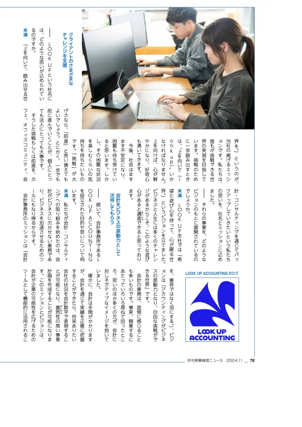 LOOK UP ACCOUNTINGが「実務経営 月刊実務経営ニュース 11月号『既成の枠にとらわれない発想と組織力で成長を続ける株式会社LOOK UP』」に掲載されました