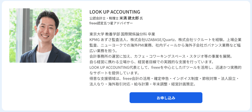 この度、LOOK UP ACCOUNTINGは、freeeが提供する「スポット・オンライン税務相談」サービスに参加させていただいております。